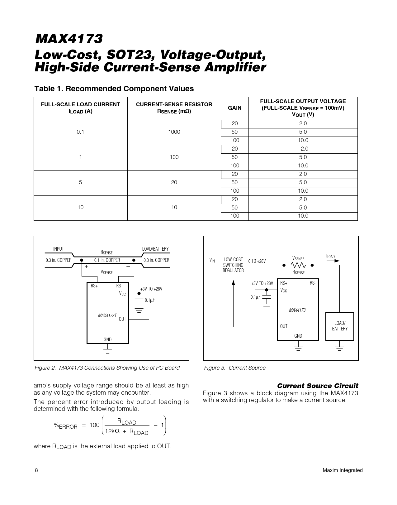 Low-Cost, SOT23, Voltage-Output, High-Side Current-Sense Amplifier. Table 1. Recommended Component Values