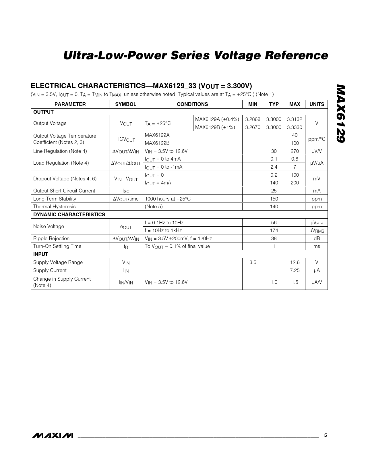 Ultra-Low-Power Series Voltage Reference MAX6129 ELECTRICAL CHARACTERISTICS—MAX6129_33 (VOUT = 3.300V)