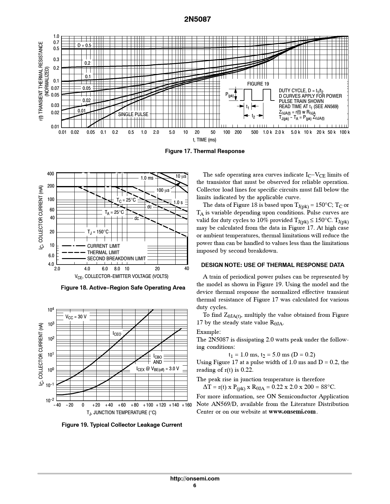 2N5087. Figure 17. Thermal Response. DESIGN NOTE: USE OF THERMAL RESPONSE DATA. Figure 18. Active−Region Safe Operating Area