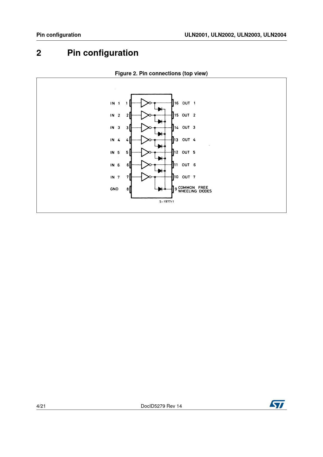 | Seiten / Seite | 21 / 4 — Pin configuration. ULN2001, ULN2002, ULN2003, ULN2004. Figure 2. Pin … |