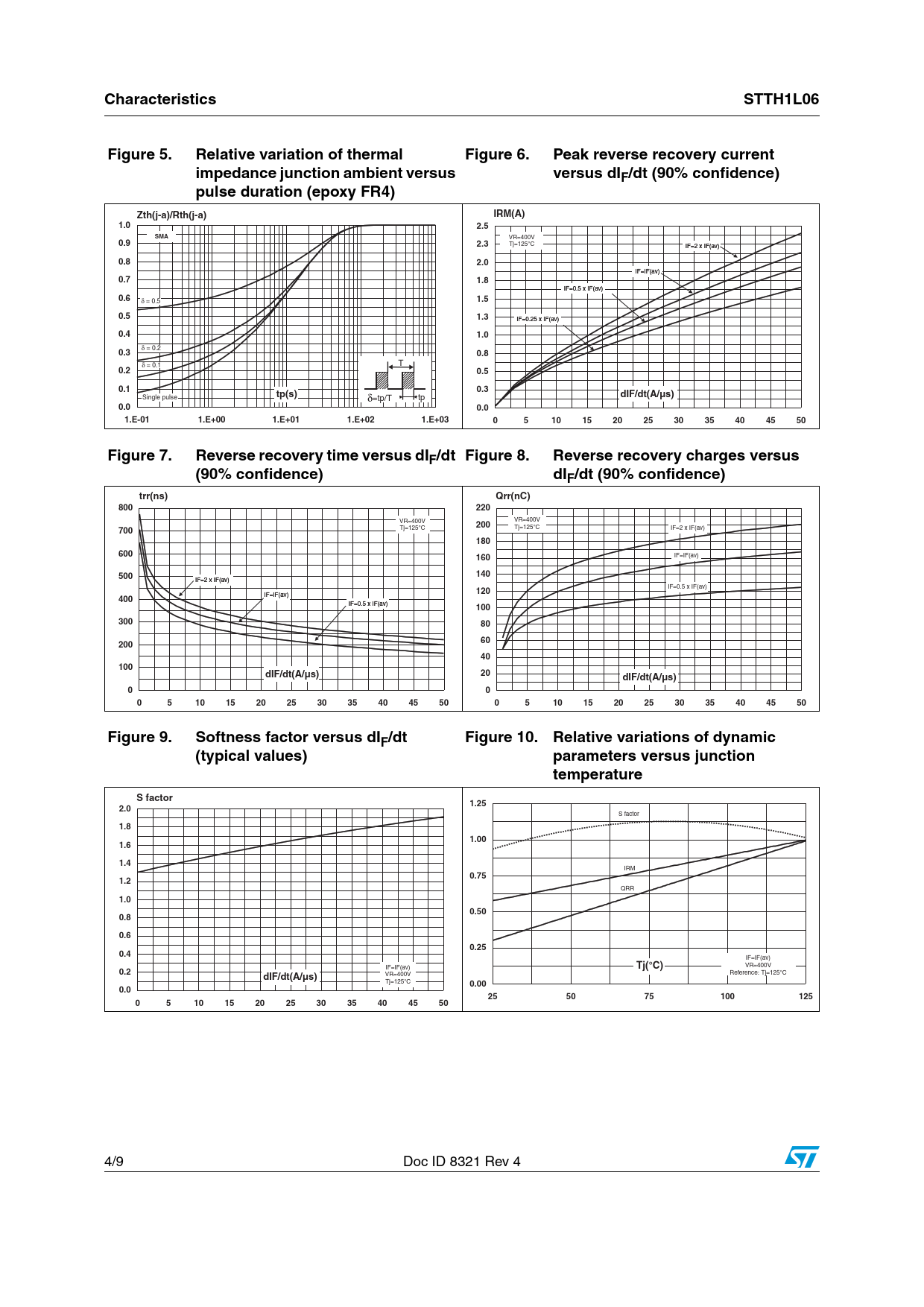 Characteristics. STTH1L06. Figure 5. Relative variation of thermal. Figure 6. Peak reverse recovery current
