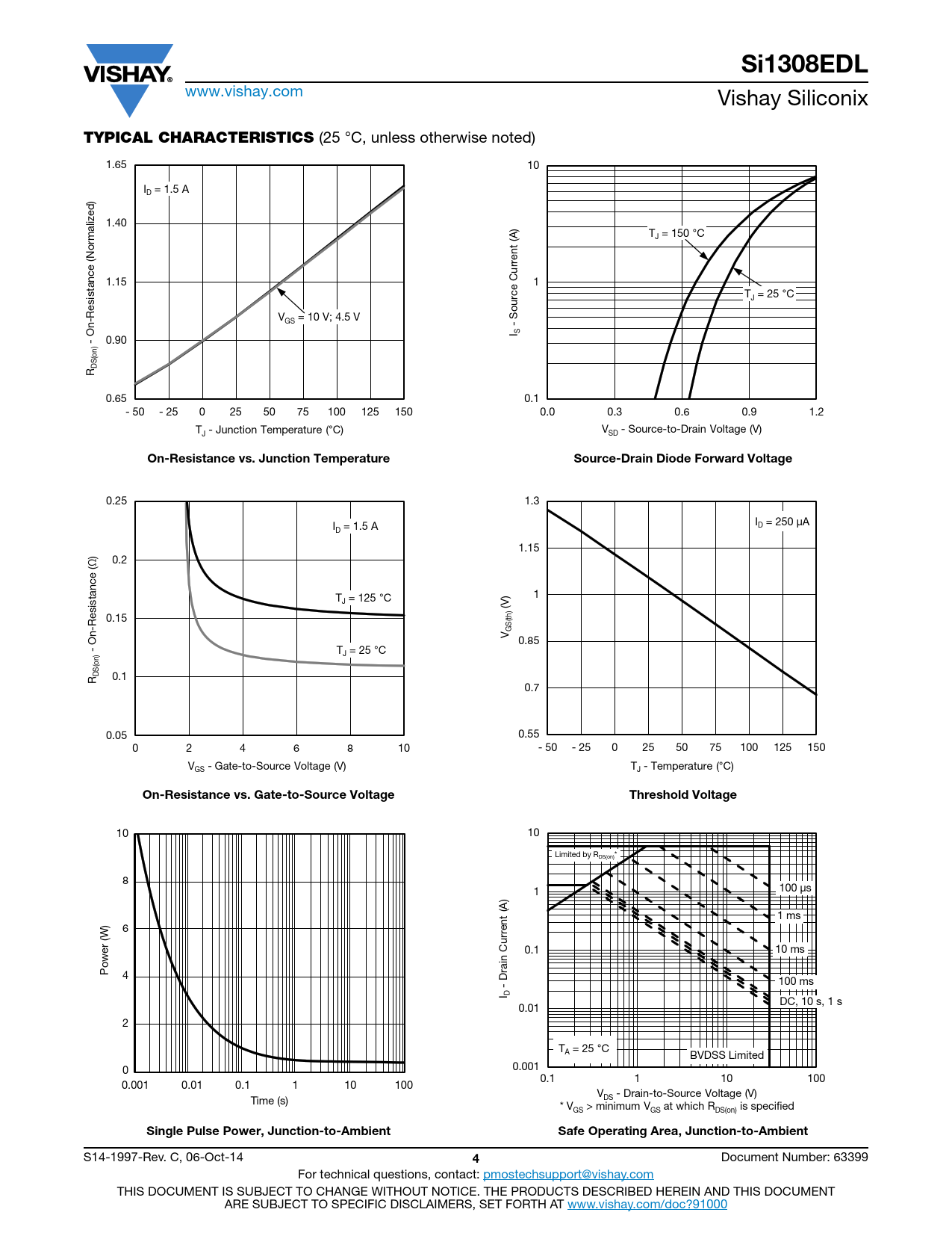Seiten / Seite11 / 4 — Si1308EDL. TYPICAL CHARACTERISTICS. On-Resistance vs. Junction …
