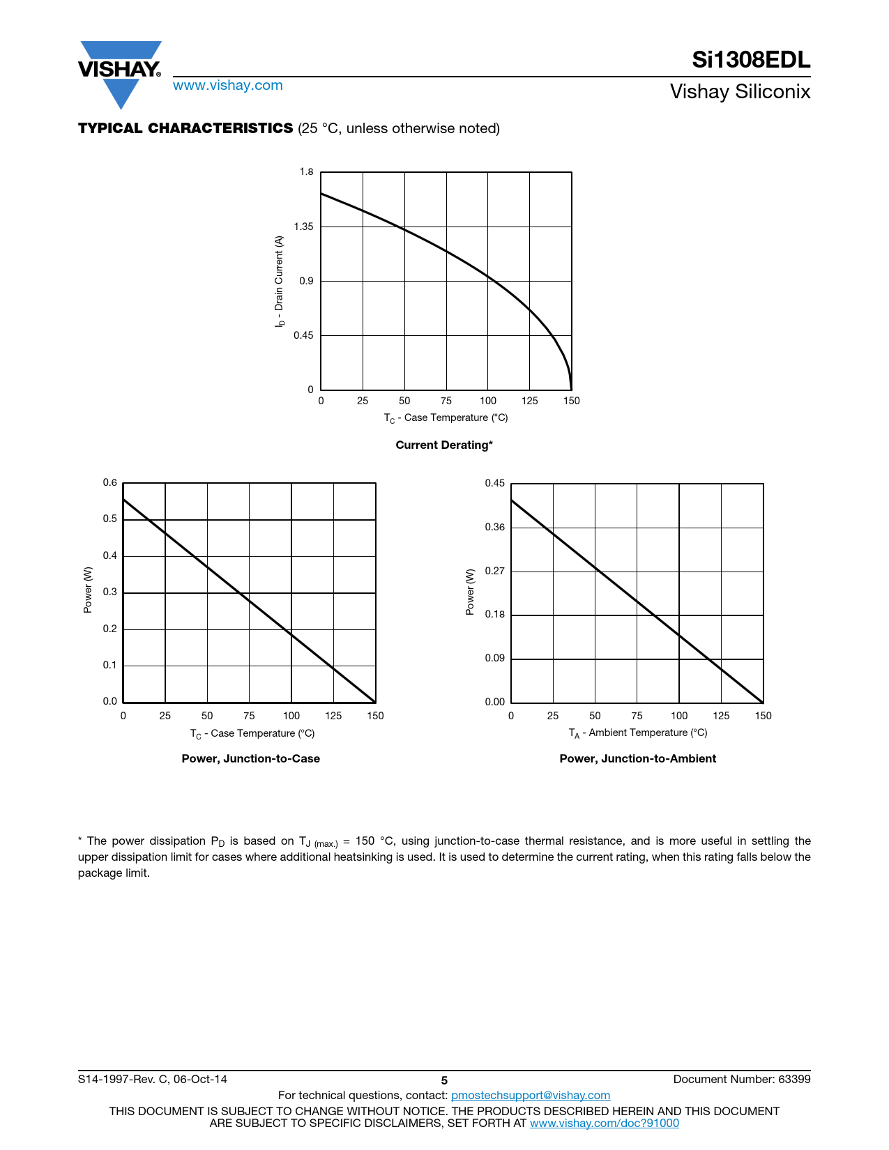 Si1308EDL. TYPICAL CHARACTERISTICS. Current Derating*. Power, Junction-to-Case. Power, Junction-to-Ambient