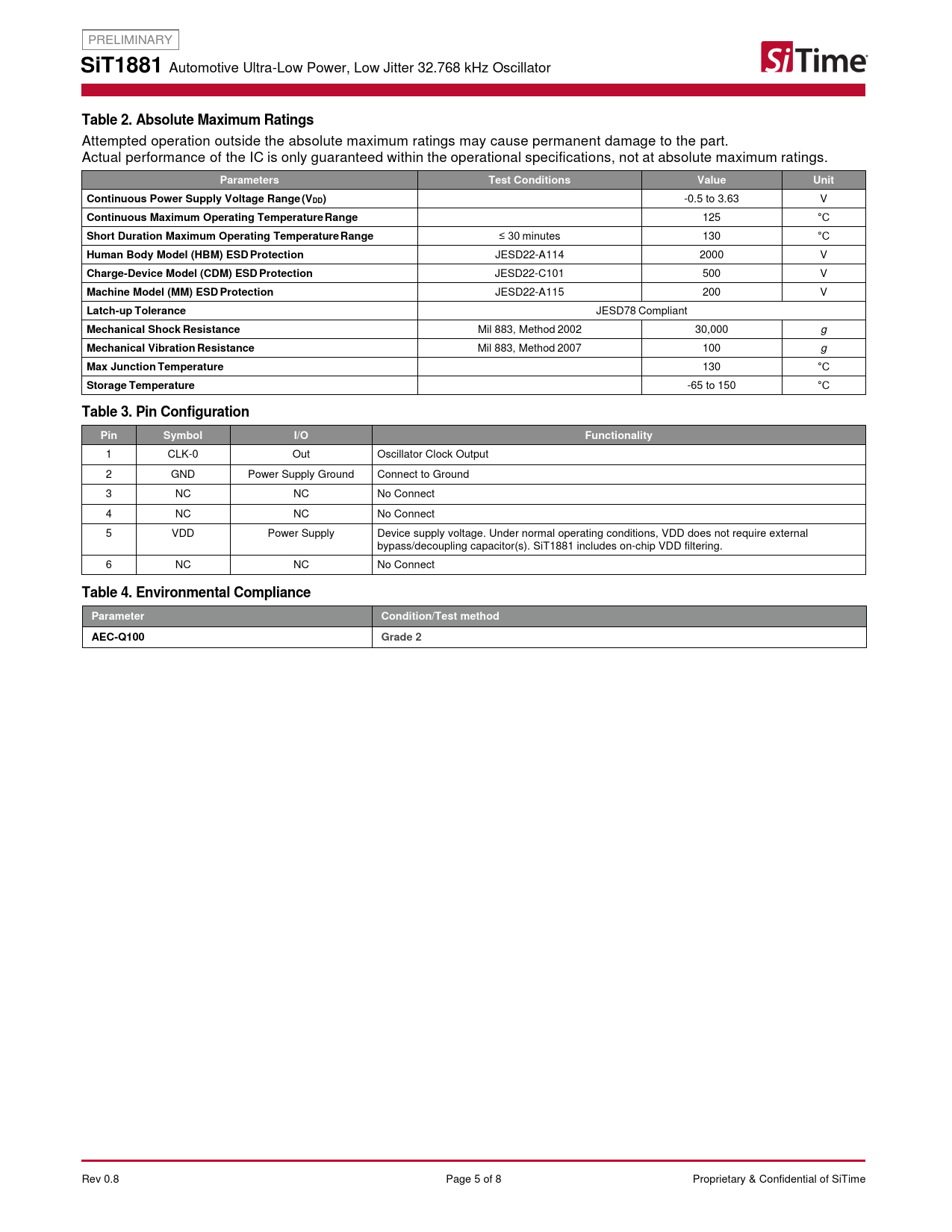 Seiten / Seite8 / 5 — SiT1881. Table 2. Absolute Maximum Ratings. Parameters. Test Conditions. …