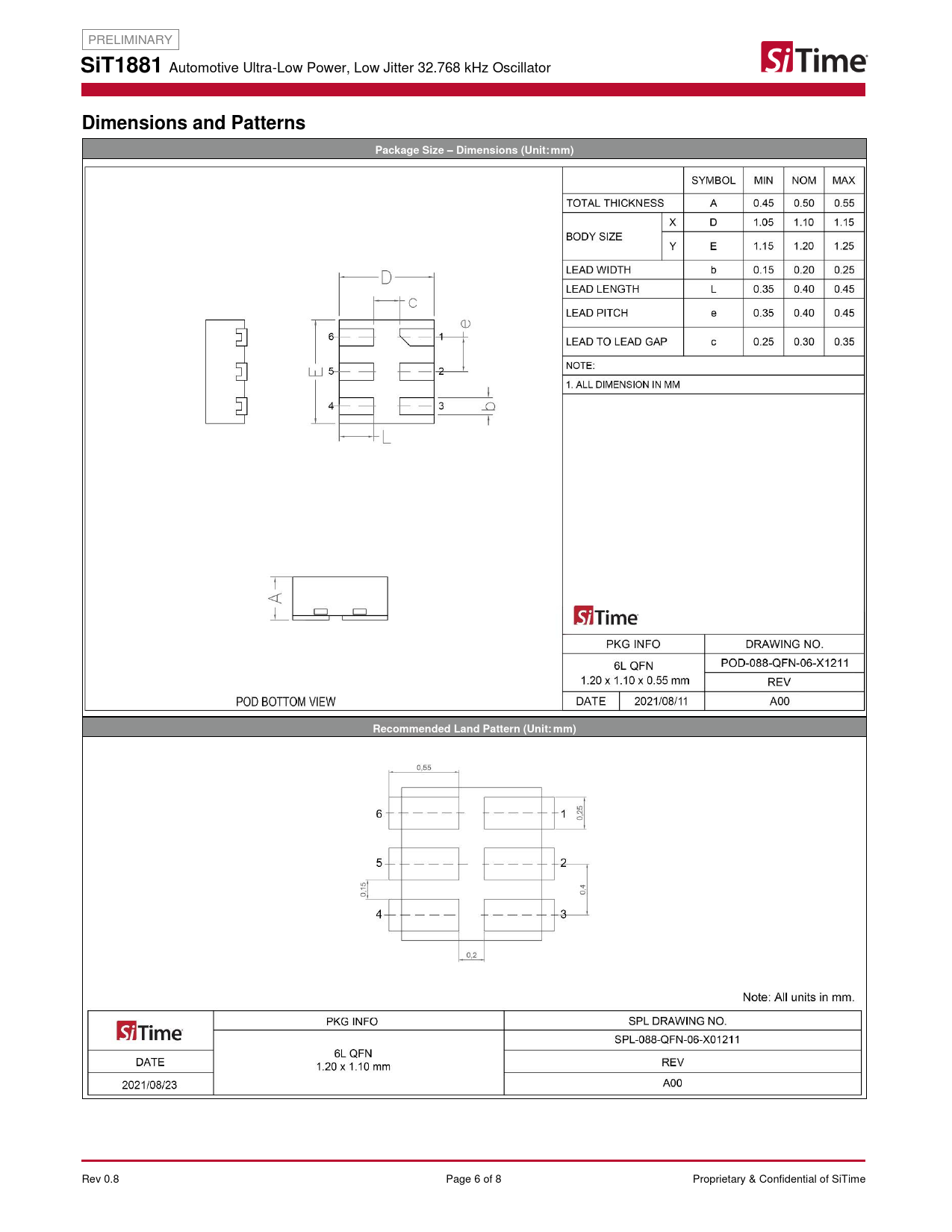 | Seiten / Seite | 8 / 6 — SiT1881. Dimensions and Patterns. Package Size – Dimensions (Unit: mm). … |