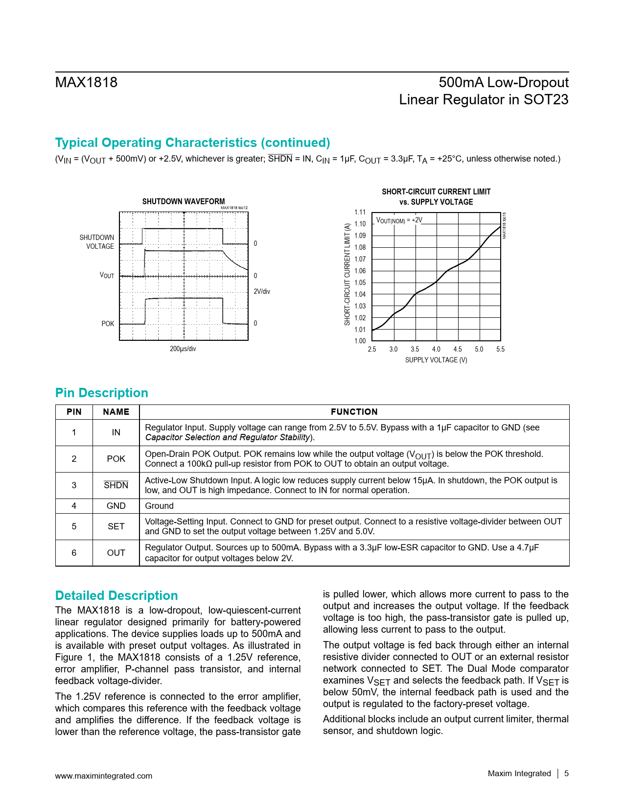 MAX1818 toc12 1.11 1.10 VOUT(NOM) = +2V SHUTDOWN 1.09 MAX1818 toc13 VOLTAGE 0 1.08 1.07 V 1.06 OUT 0 1.05 2V/div 1.04 1.03 1.02 POK 0 SHORT-CIRCUIT CURRENT LIMIT (A) 1.01 1.00 200µs/div 2.5 3.0 3.5 4.0 4.5 5.0 5.5 SUPPLY VOLTAGE (V)