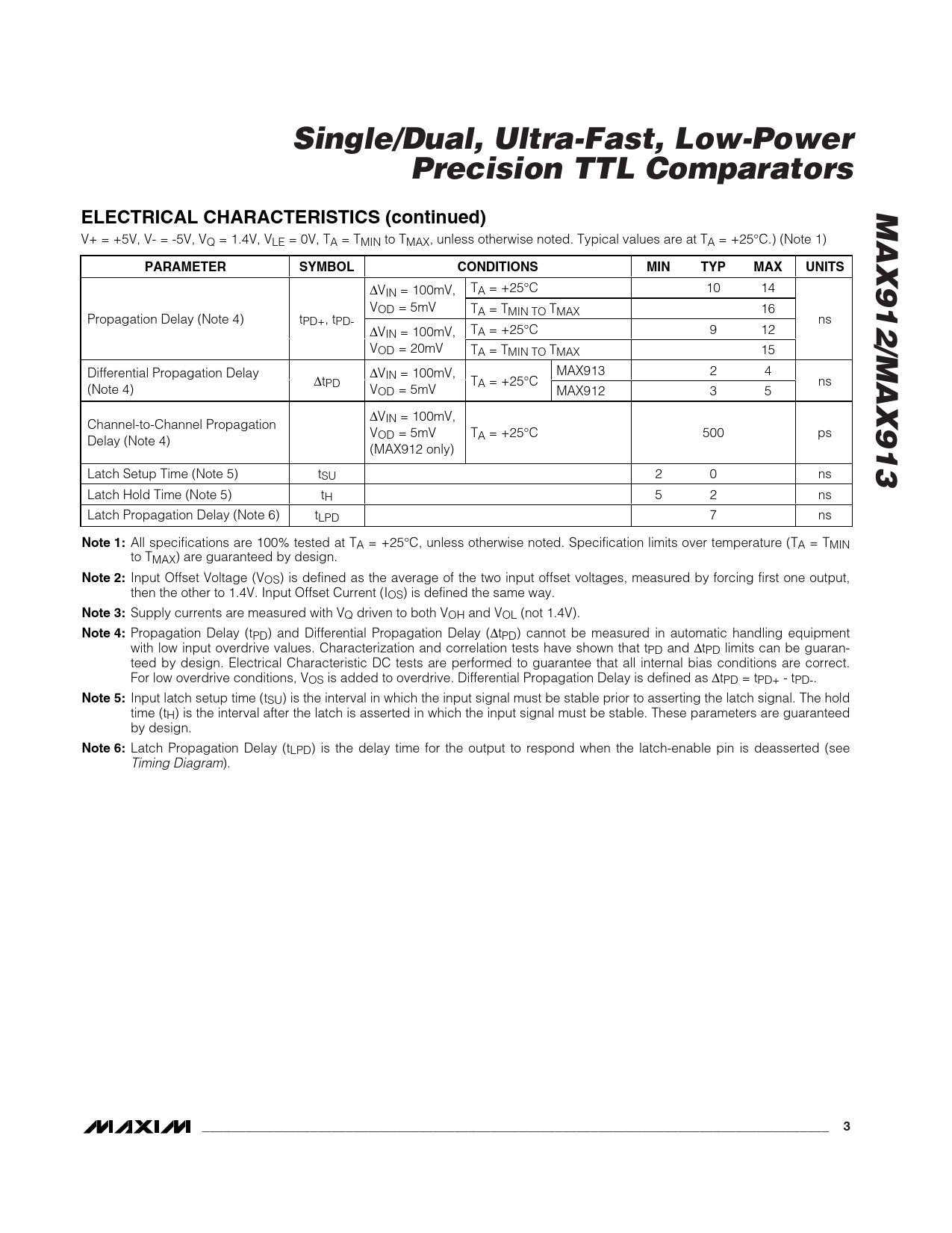 Single/Dual, Ultra-Fast, Low-Power. Precision TTL Comparators. MAX912/MAX913. ELECTRICAL CHARACTERISTICS (continued). PARAMETER