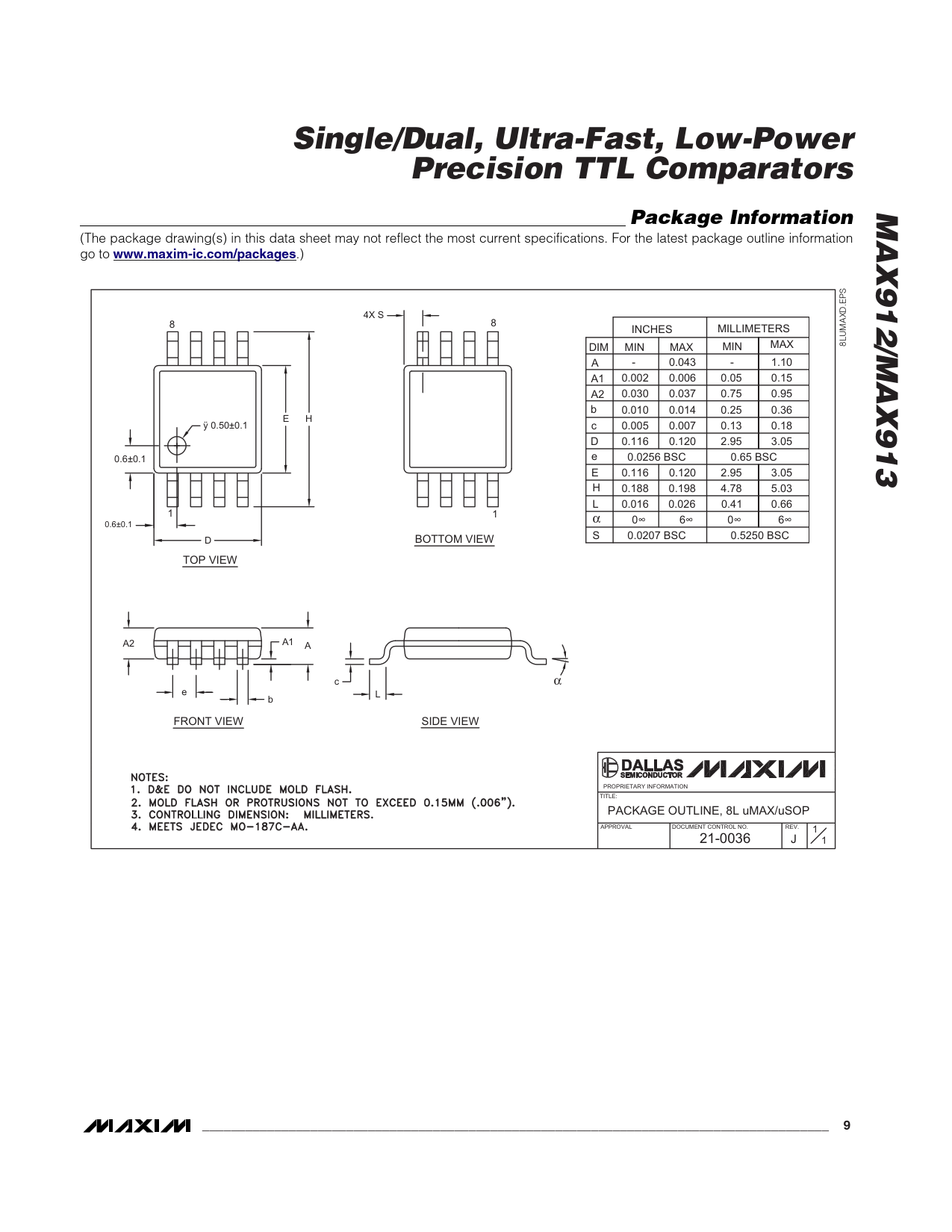 Single/Dual, Ultra-Fast, Low-Power. Precision TTL Comparators. MAX912/MAX913. Package Information. www.maxim-ic.com/packages