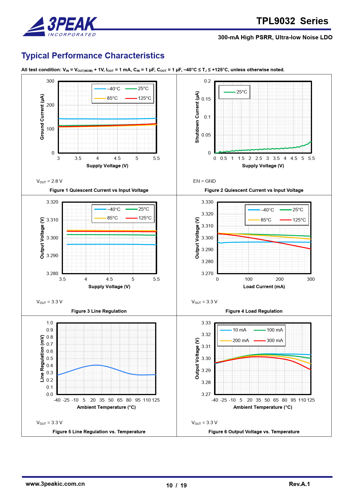 Figure 5 Line Regulation vs. Temperature Figure 6 Output Voltage vs. Temperature www.3peakic.com.cn Rev.A.1 10 / 19