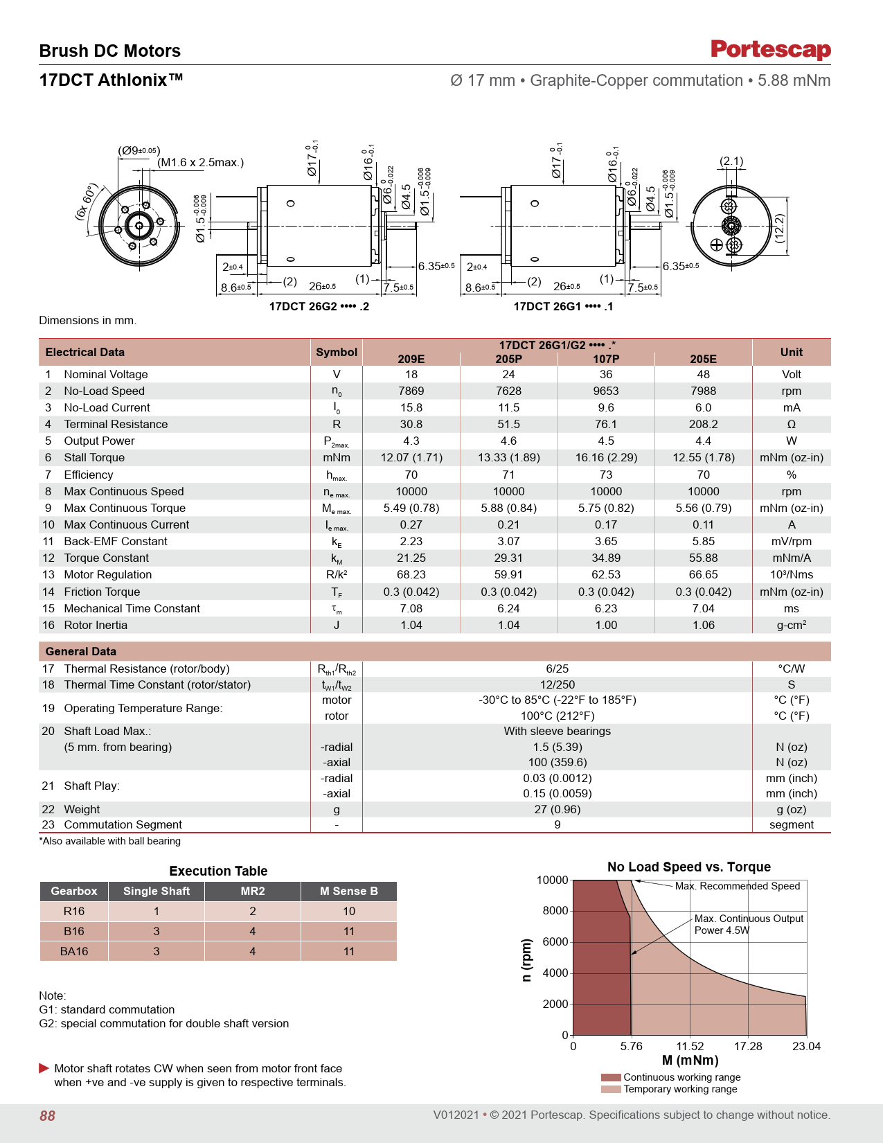 Brush DC Motors 17DCT Athlonix™. 17DCT 26G2 •••• .2. 17DCT 26G1 •••• .1. Electrical Data. Symbol. 17DCT 26G1/G2 •••• .*. Unit. 209E