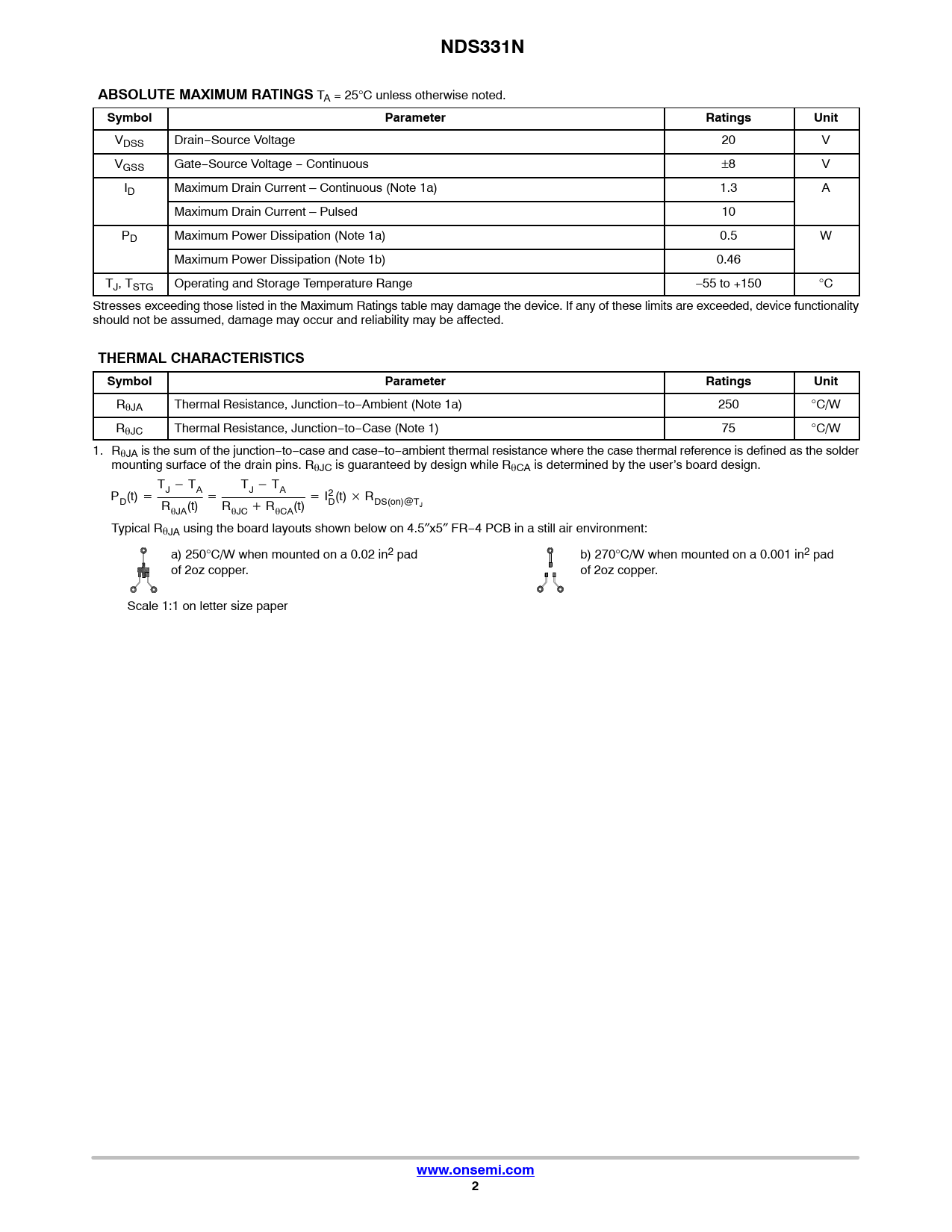 NDS331N ABSOLUTE MAXIMUM RATINGS Symbol Parameter Ratings Unit THERMAL CHARACTERISTICS www.onsemi.com