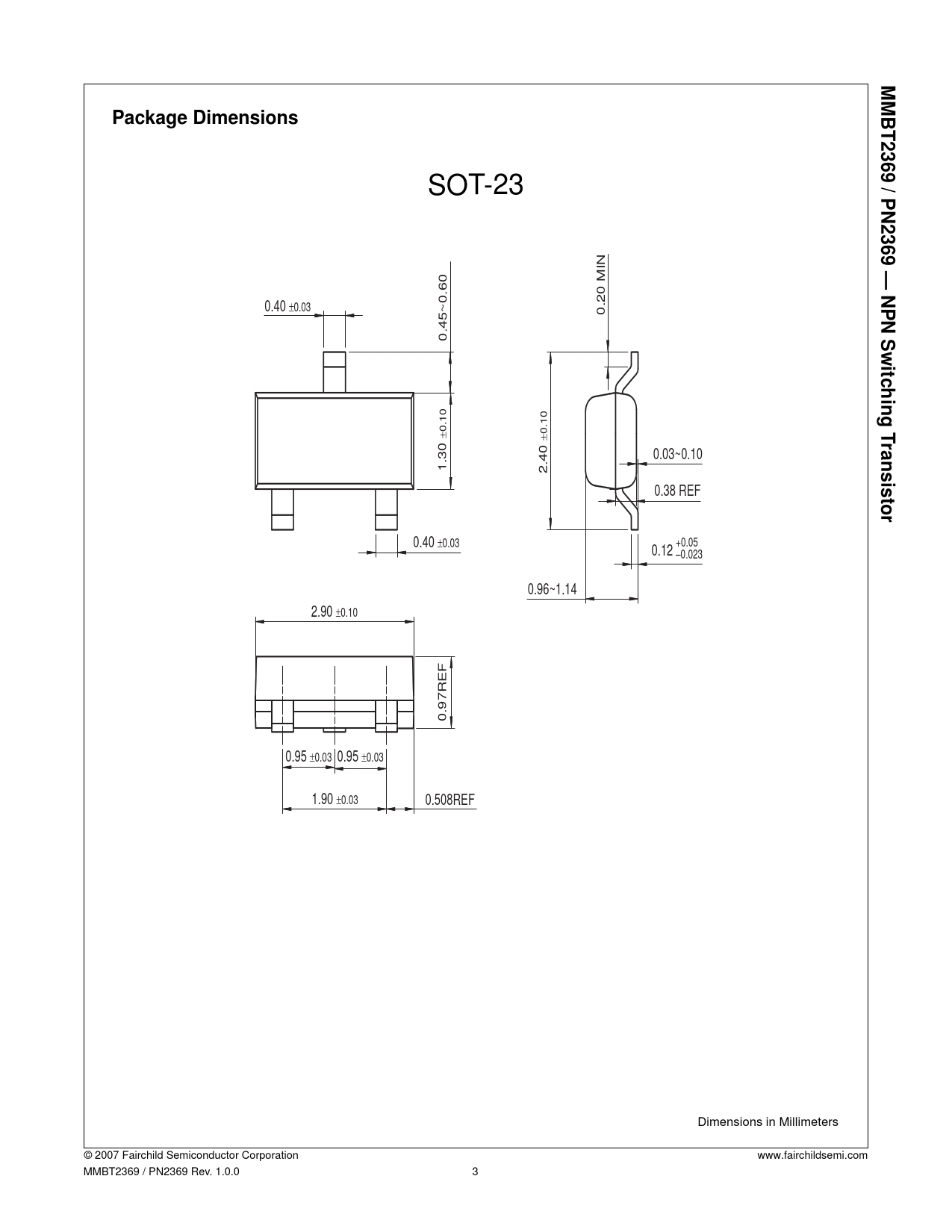 MMBT2369 / PN2369 — NPN Switching Transistor Package Dimensions ±0.10 ±0.10 2.40 0.40 ±0.03 1.30 0.45~0.60 0.20 MIN SOT-23 0.03~0.10