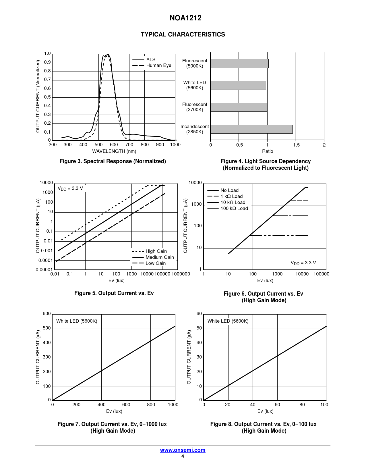 NOA1212. TYPICAL CHARACTERISTICS. Figure 3. Spectral Response (Normalized). Figure 4. Light Source Dependency