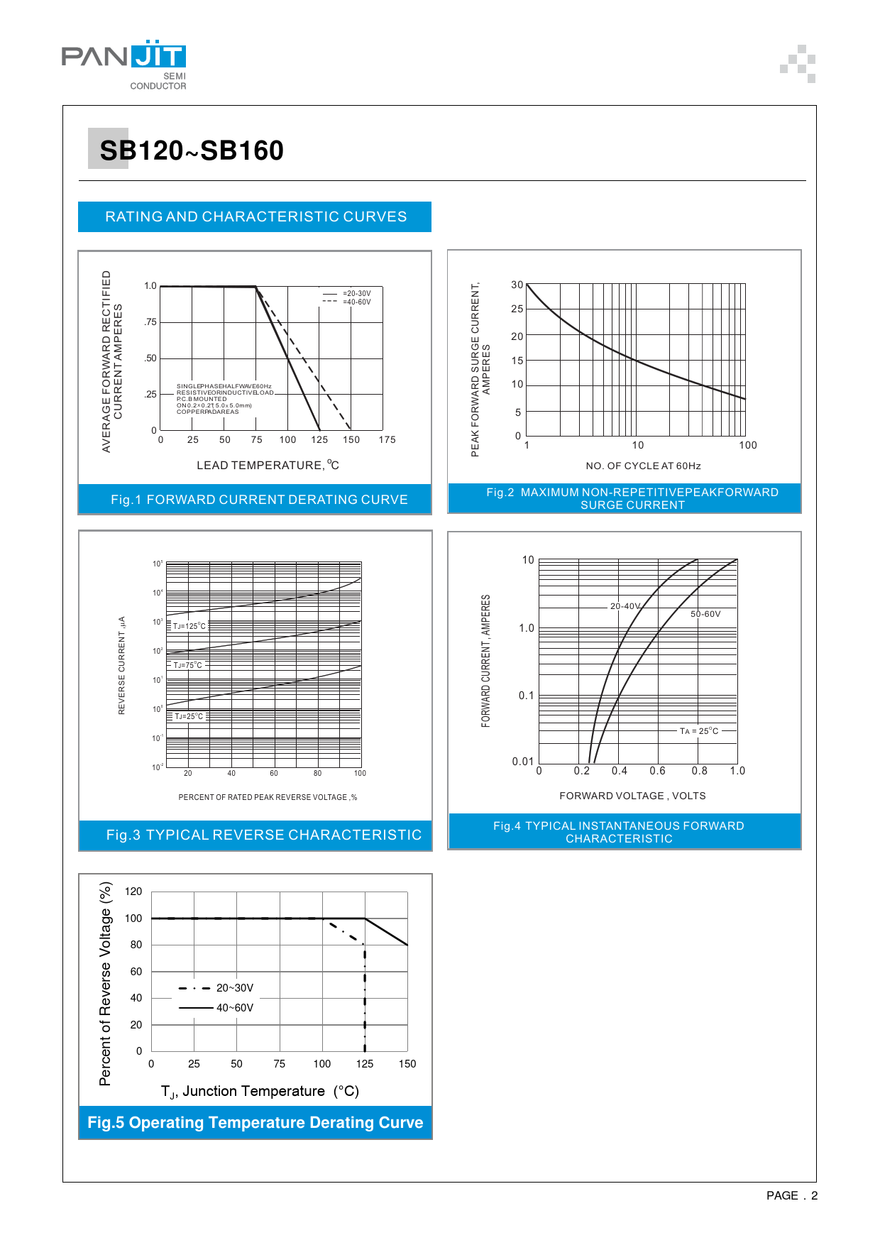 Datasheet SB120, SB130, SB140, SB150, SB160 (PanJit) - 2