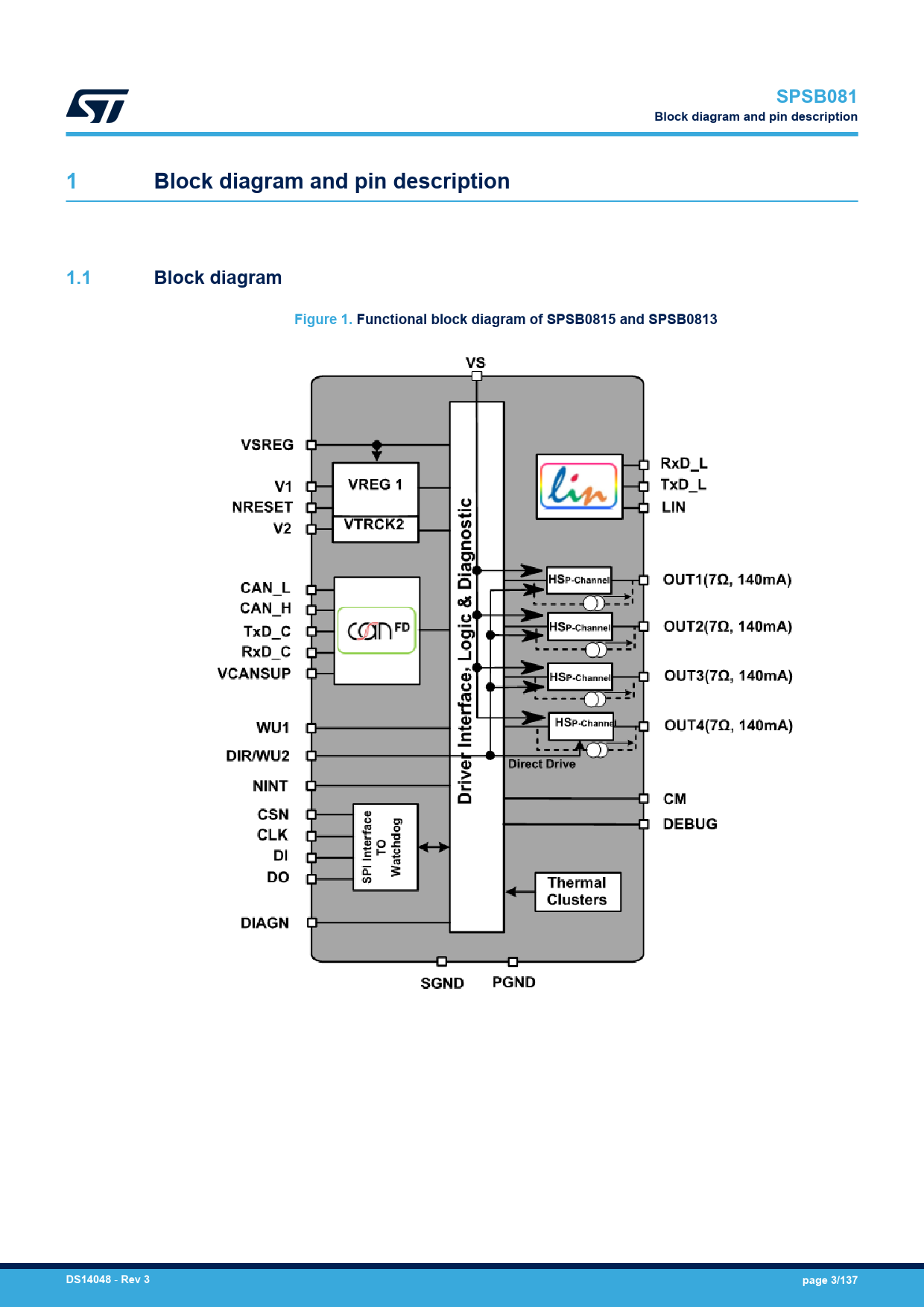 | Seiten / Seite | 137 / 3 — SPSB081. Block diagram and pin description. 1.1. Block diagram. Figure 1. … |