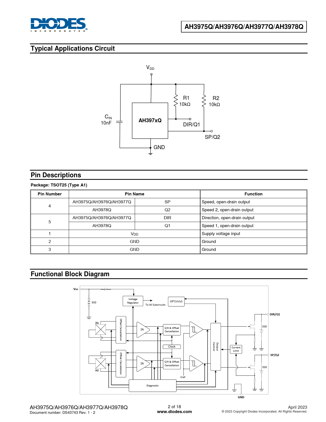 Datasheet AH3975Q, AH3976Q, AH3977Q, AH3978Q (Diodes) - 2