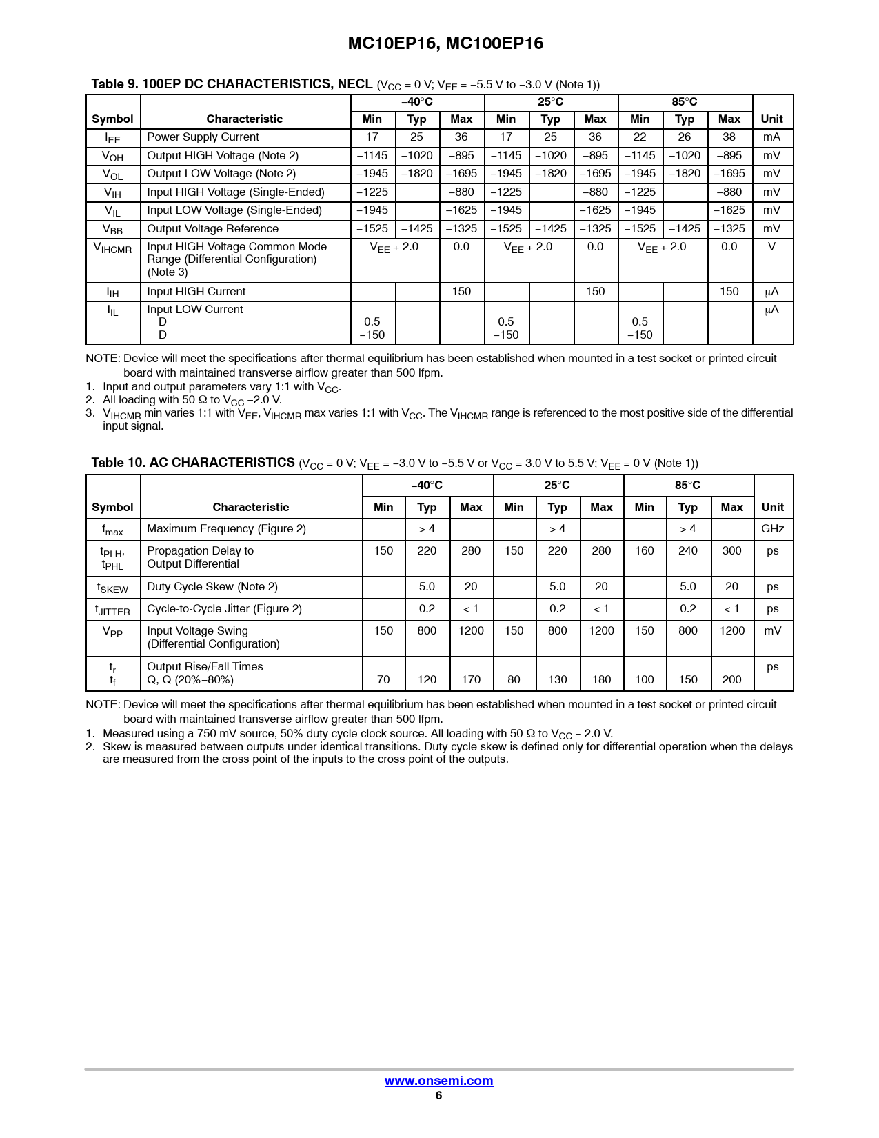 Datasheet MC10EP16, MC100EP16 (ON Semiconductor) - 6