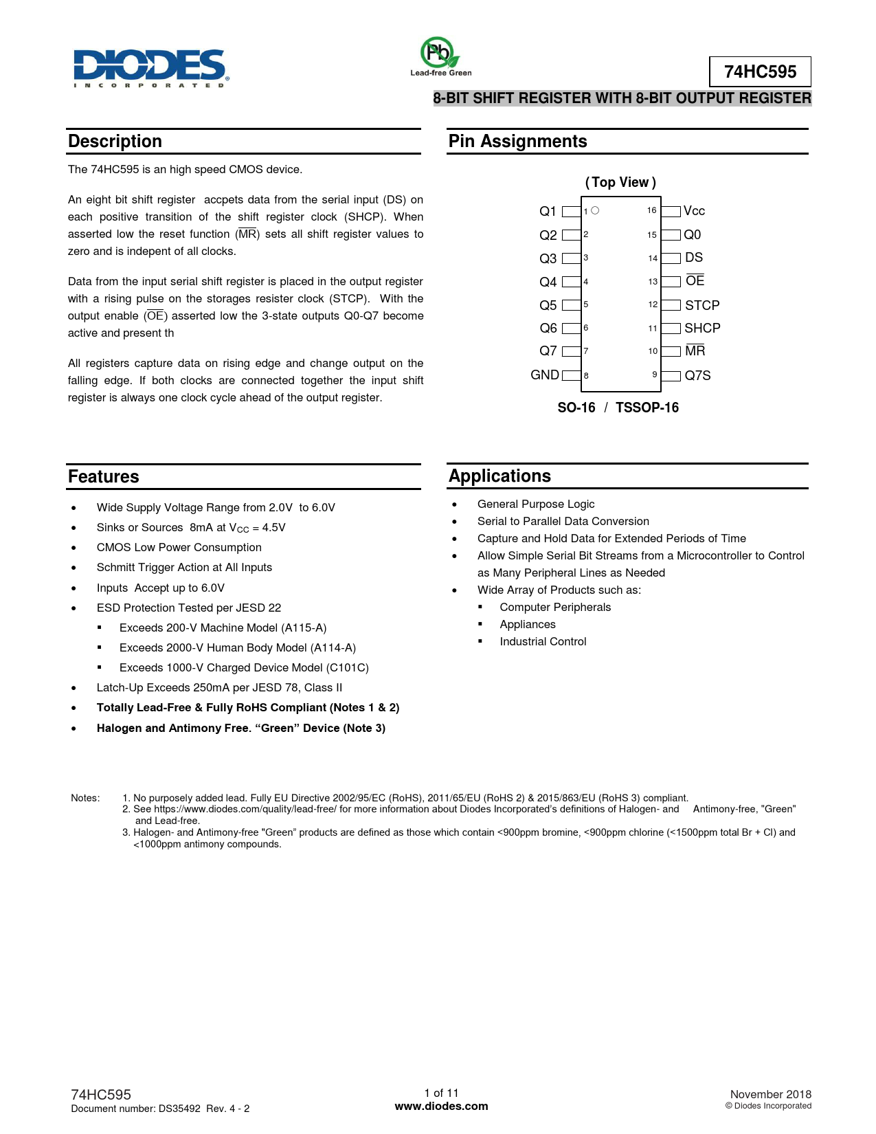 Datasheet 74HC595 (Diodes)