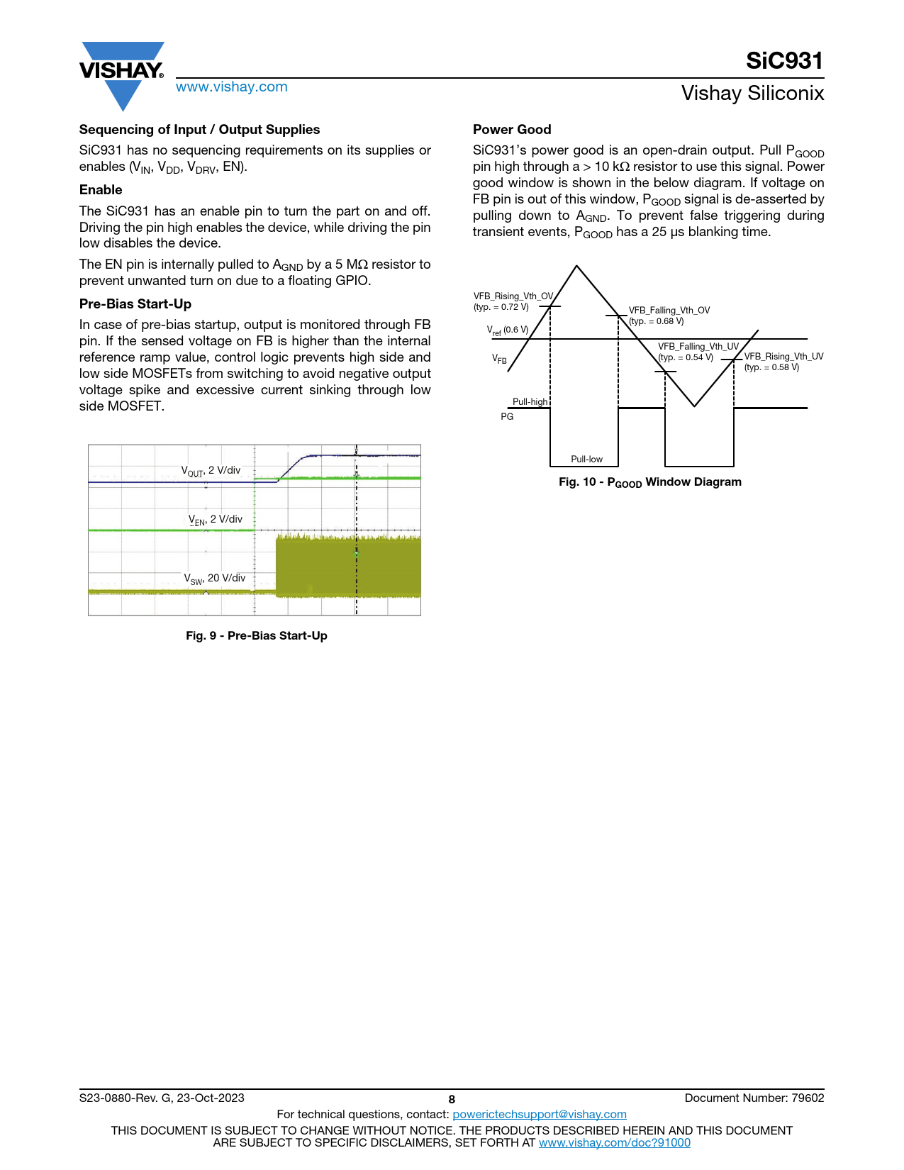SiC931. Sequencing of Input / Output Supplies. Power Good. Enable. Pre-Bias Start-Up. Fig. 10 - PGOOD Window Diagram
