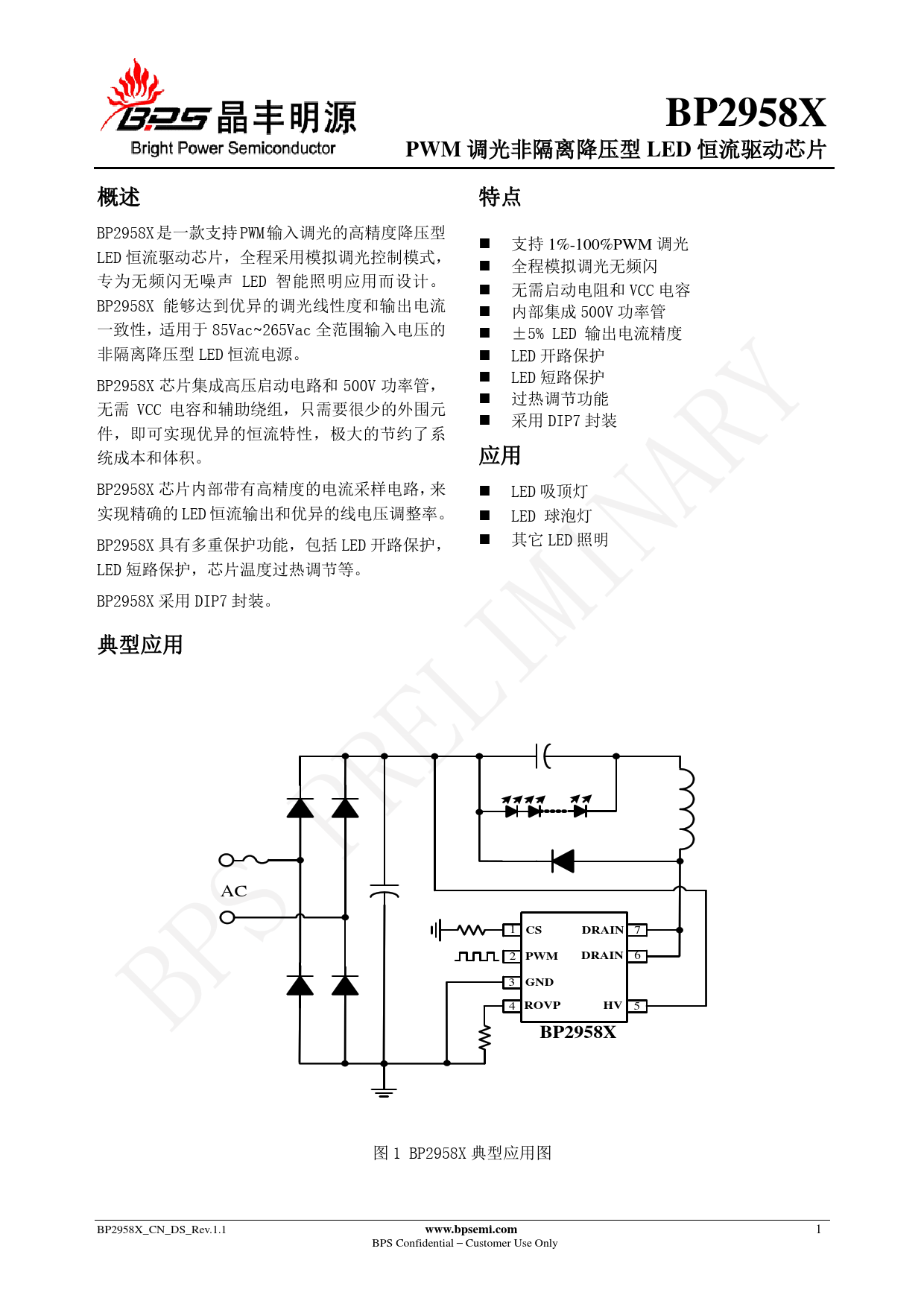 BP2958X. PWM. LED. DRAIN. GND. ROVP. www.bpsemi.com