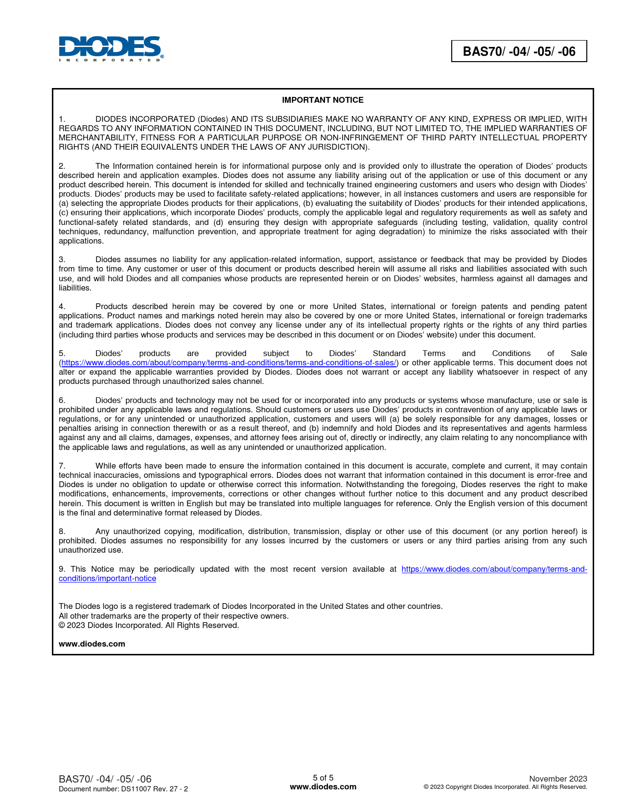 | Seiten / Seite | 5 / 5 — BAS70/ -04/ -05/ -06. IMPORTANT NOTICE. www.diodes.com |