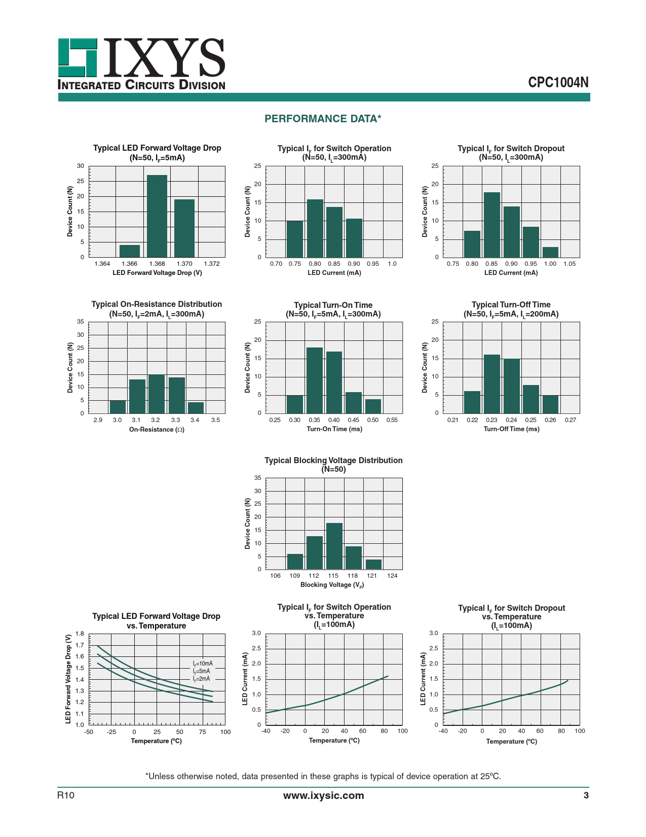 CPC1004N. PERFORMANCE DATA*. Typical LED Forward Voltage Drop. Typical I for Switch Operation. Typical I for Switch Dropout