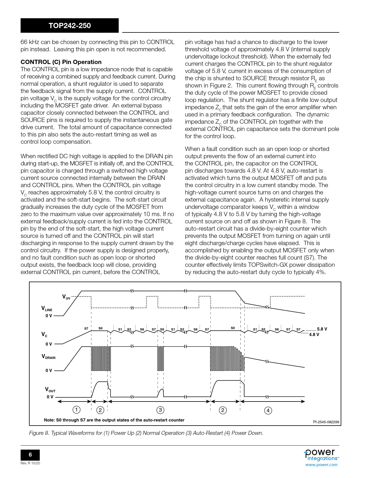 TOP242-250 CONTROL (C) Pin Operation VUV LINE 0 V 5.8 V 4.8 V VDRAIN VOUT