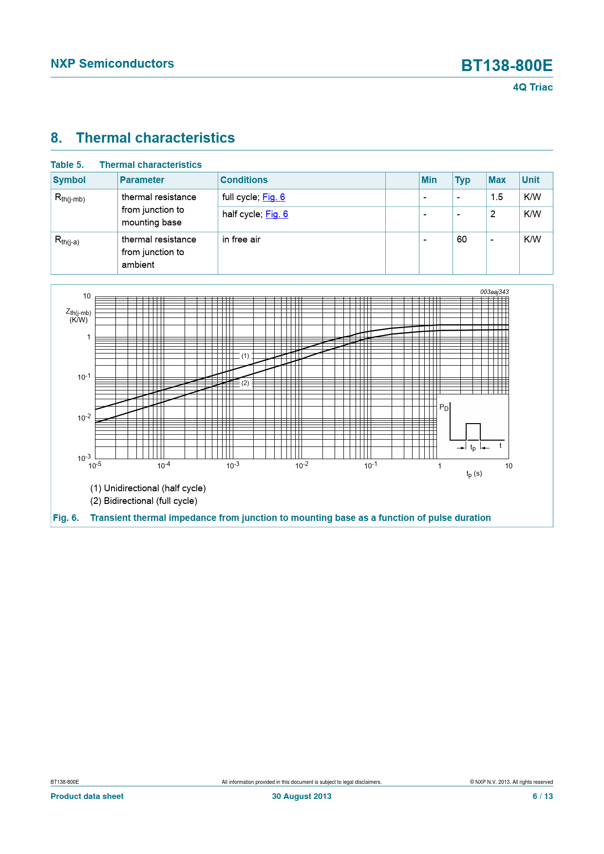 | Seiten / Seite | 13 / 6 — NXP Semiconductors. BT138-800E. 4Q Triac. 8. Thermal characteristics. … |