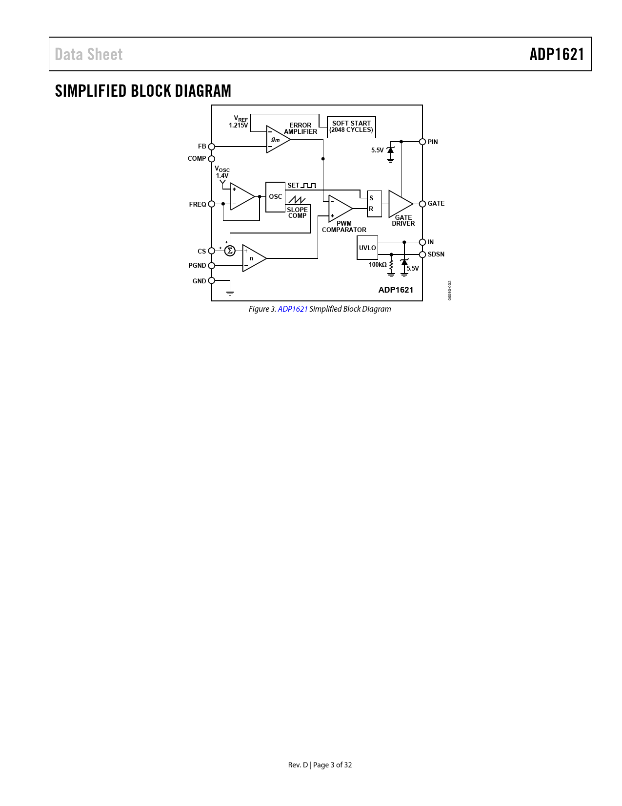 | Seiten / Seite | 32 / 3 — Data Sheet. ADP1621. SIMPLIFIED BLOCK DIAGRAM. VREF. 1.215V. ERROR. SOFT … |