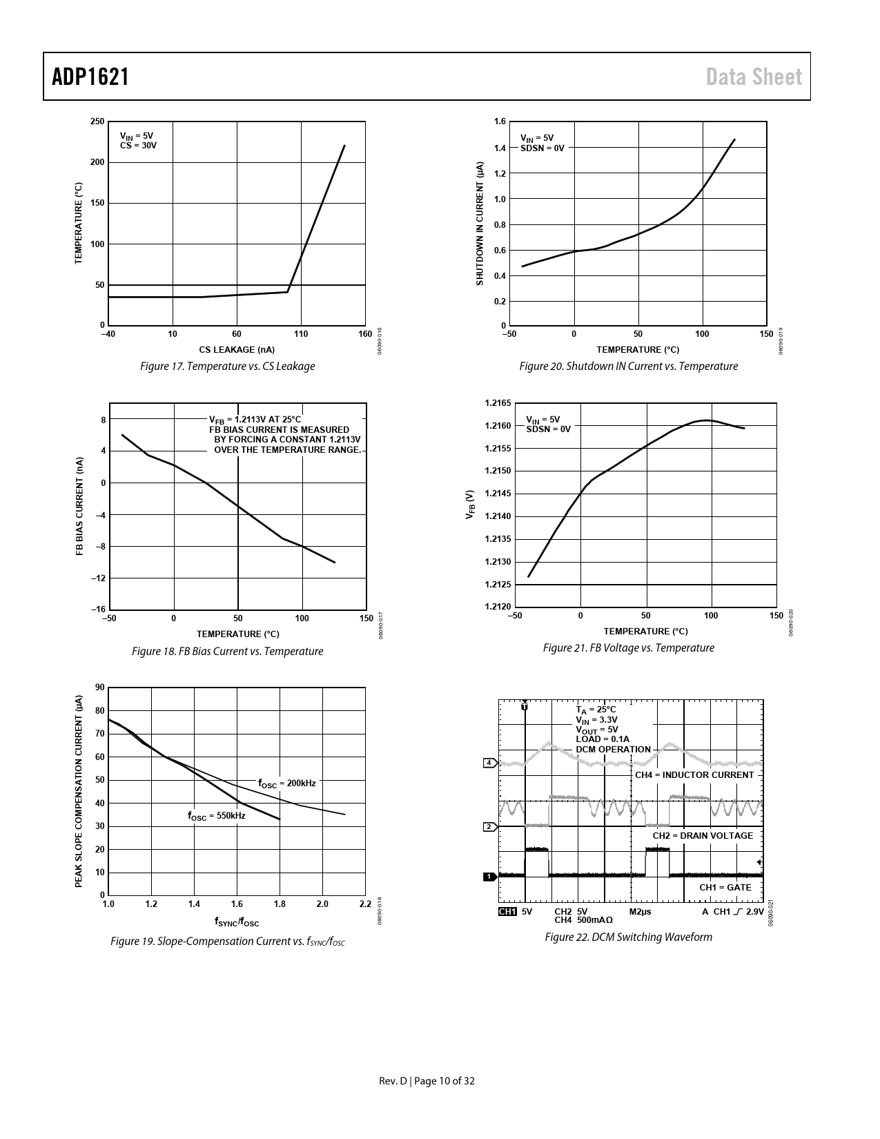 ADP1621. Data Sheet. 250. 1.6. VIN = 5V. CS = 30V. 1.4. SDSN = 0V. 200. A) µ (. 1.2. °C). ( 150. 1.0. URE. CURRE. 0.8. RAT. N I. P 100. 0.6. E T. DO UT H. 0.4. 0.2. –40