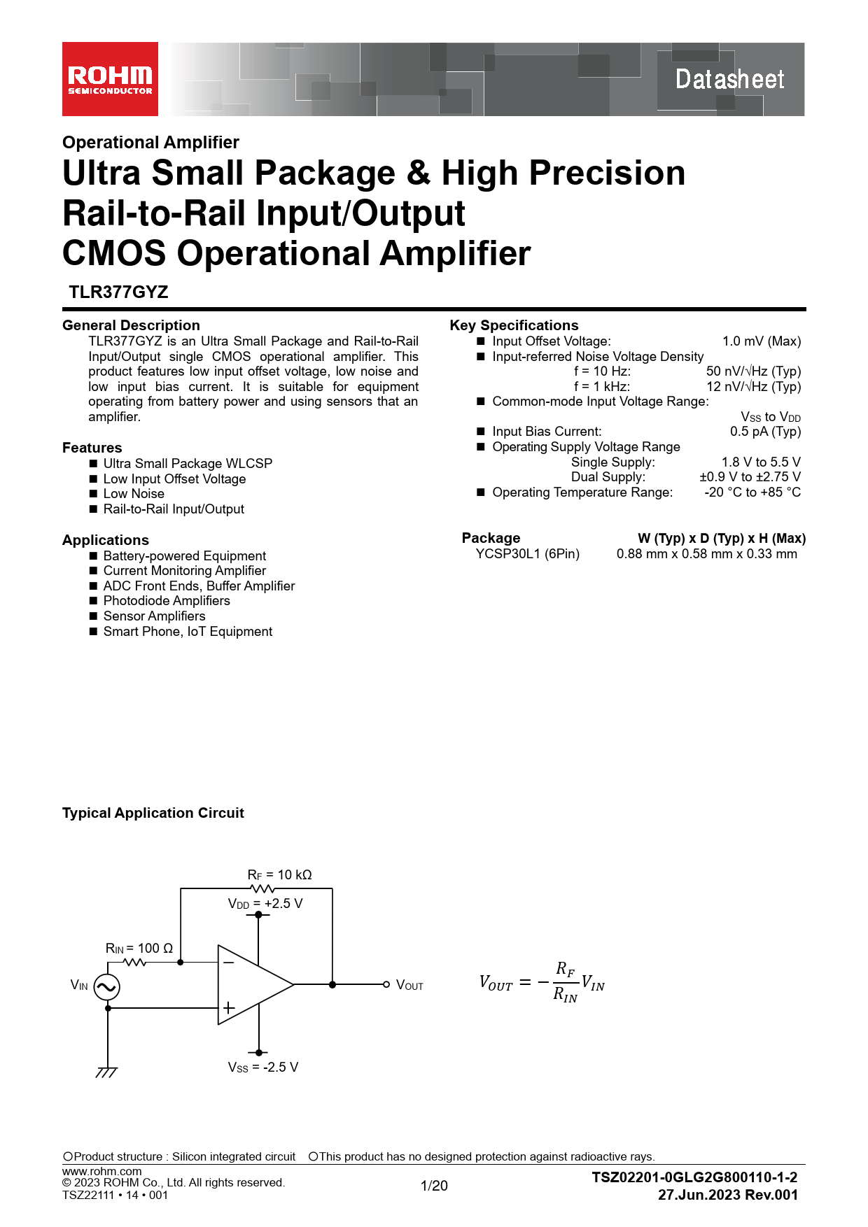 erational Amplifier. Ultr. a Small Package & High. Precision. Rail-to-Rail Input/Output CMOS Operational Amplifier. TLR377GYZ