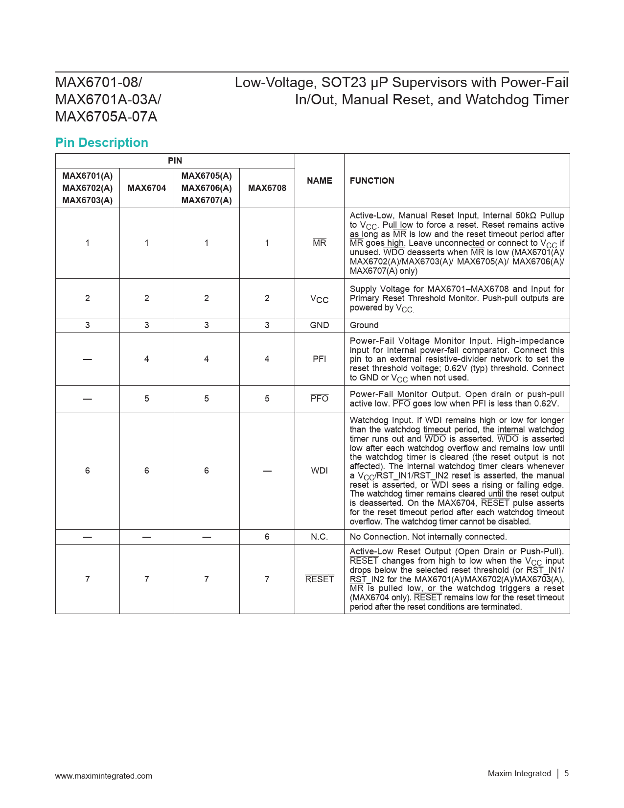 Pin Description. PIN. MAX6701(A). MAX6705(A). NAME. FUNCTION. MAX6702(A). MAX6704. MAX6706(A). MAX6708. MAX6703(A). MAX6707(A)