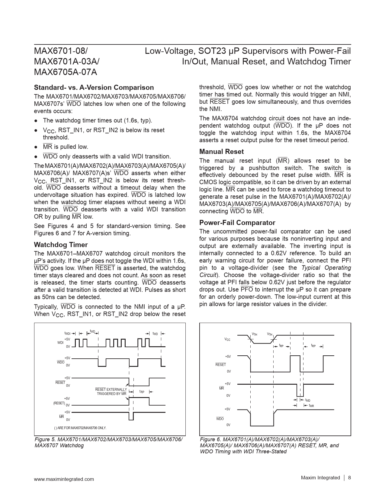 Figures 6 and 7 for A-version timing. The uncommitted power-fail comparator can be used for various purposes because its noninverting input and