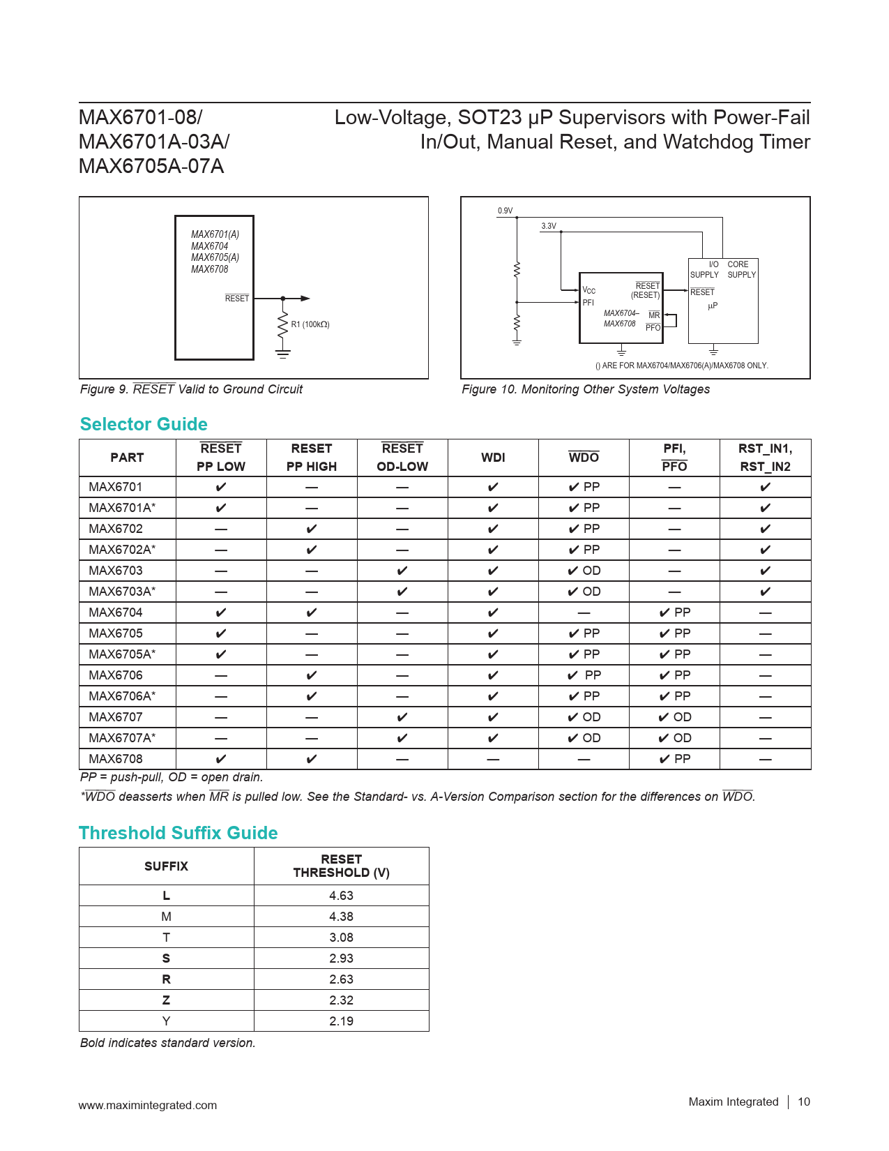 Selector Guide. RESET. RST_IN1,. PART. WDI. WDO. PFI,. PP LOW. PP HIGH. OD-LOW. PFO. RST_IN2. Threshold Suffix Guide. SUFFIX. THRESHOLD (V)