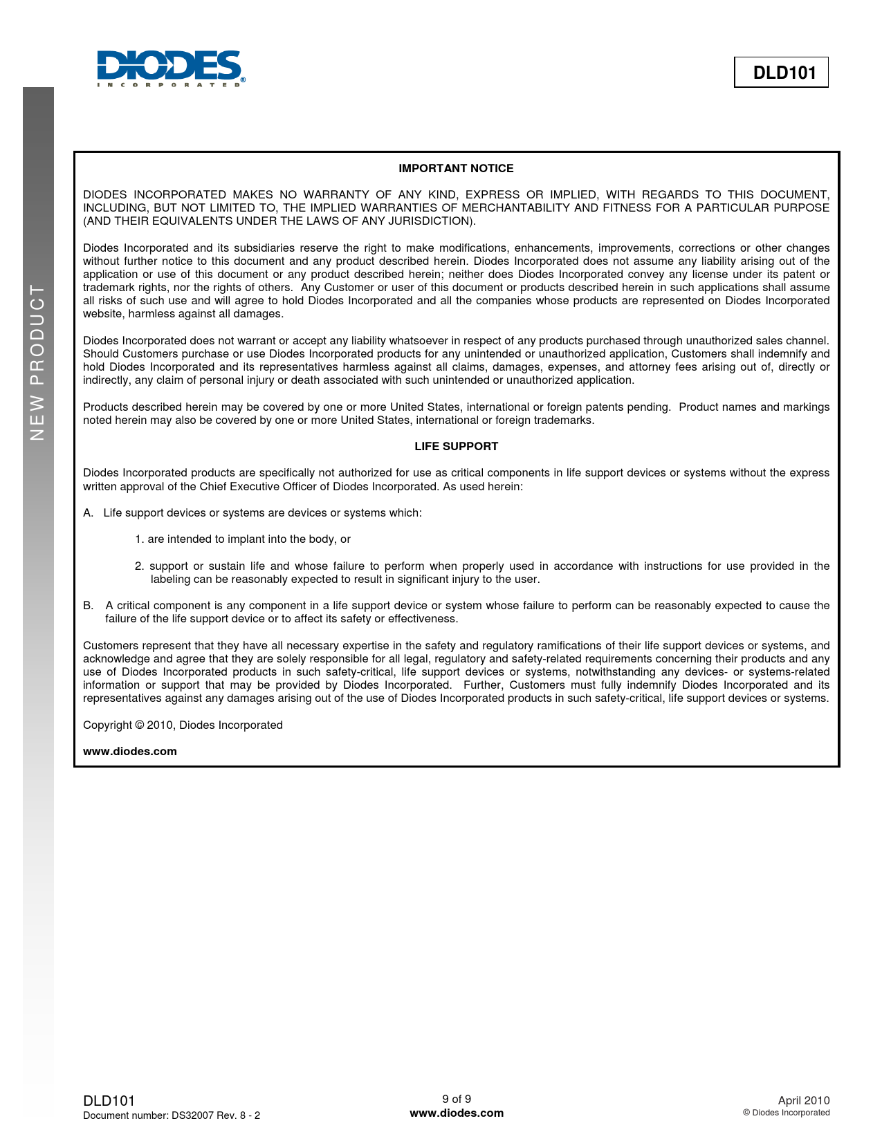 DLD101. IMPORTANT NOTICE. LIFE SUPPORT. www.diodes.com