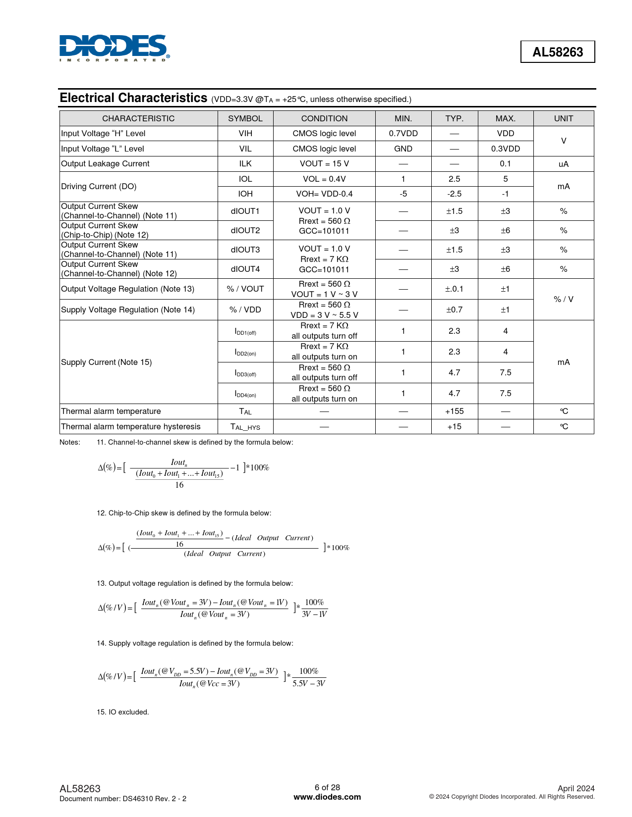| Seiten / Seite | 28 / 6 — AL58263. Electrical Characteristics. www.diodes.com |