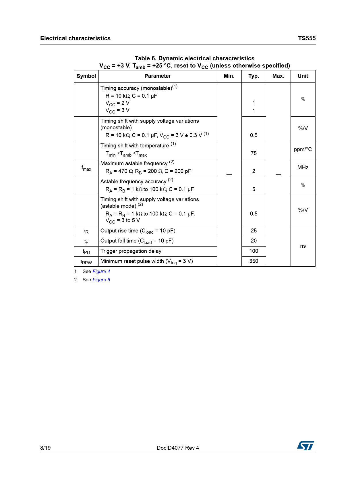 | Seiten / Seite | 19 / 8 — Electrical characteristics. TS555. Table 6. Dynamic electrical … |
