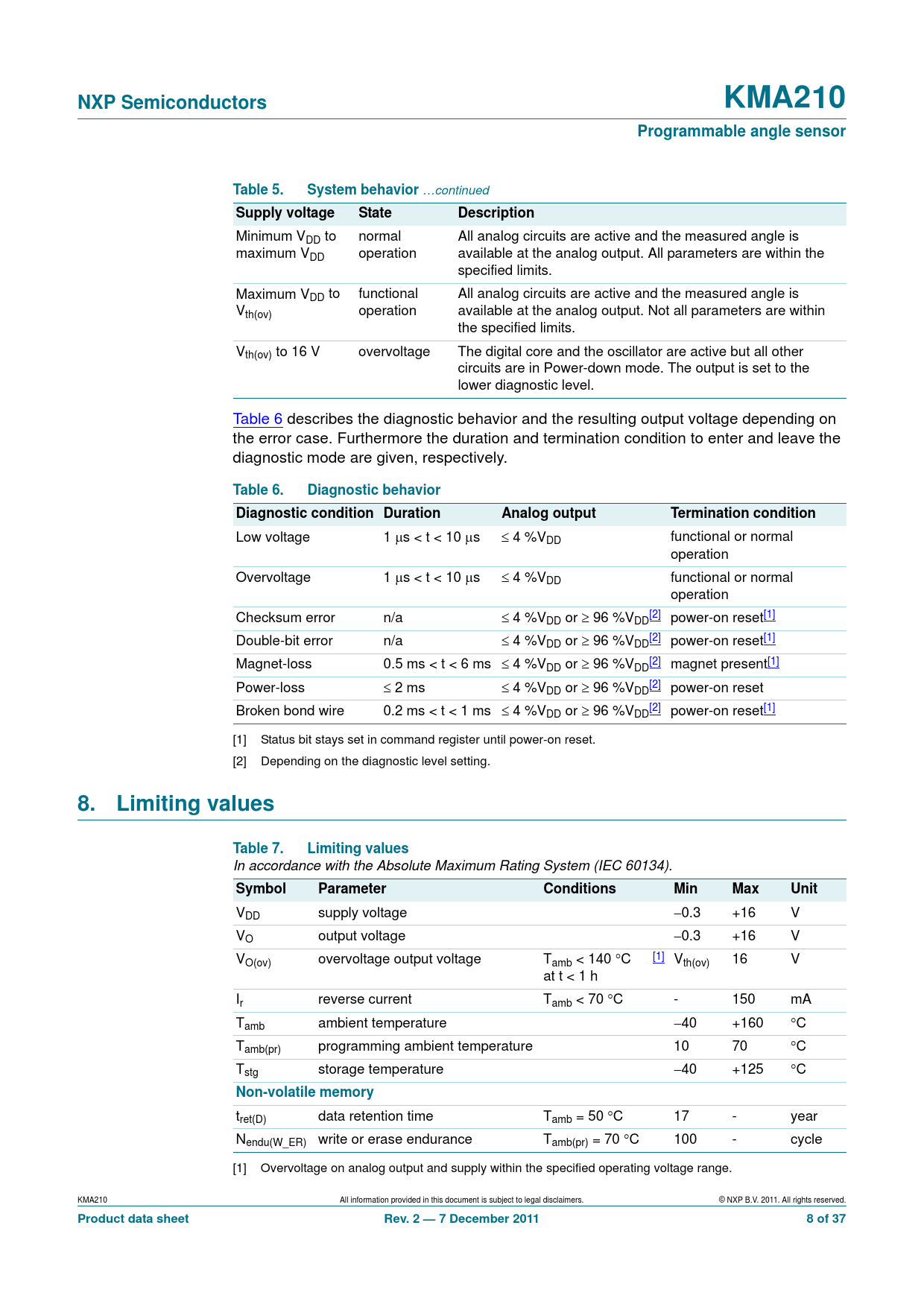 | Seiten / Seite | 37 / 8 — NXP Semiconductors. KMA210. Programmable angle sensor. Table 5. System … |