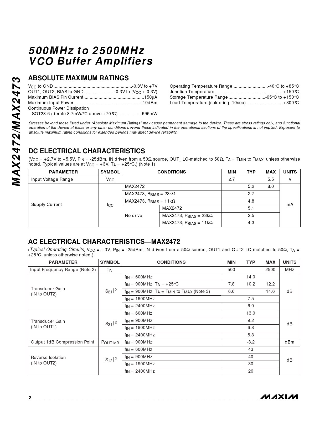 Datasheet MAX2472, MAX2473 (Analog Devices) - 2