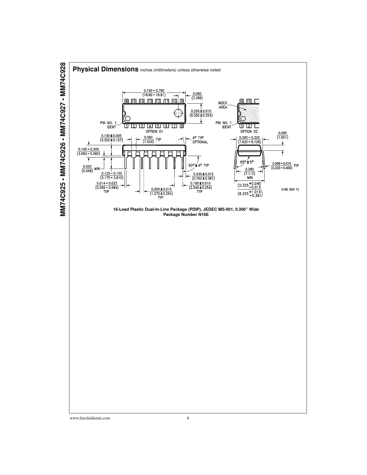 74C928 M • M 7 2 9 C 74 • MM C926 4 7 • MM 16-Lead Plastic Dual-In-Line Package (PDIP), JEDEC MS-001, 0.300” Wide MM74C925 Package Number N16E