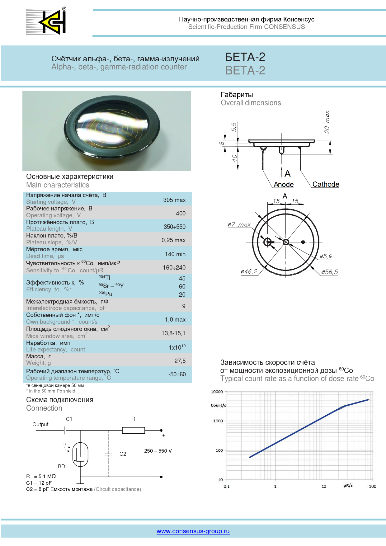 Научно-производственная. фирма. Консенсус. Scientific-Production. Firm. CONSENSUS. Счётчик. альфа-,. бета-,. гамма-излучений. БЕТА-2. Alpha-,