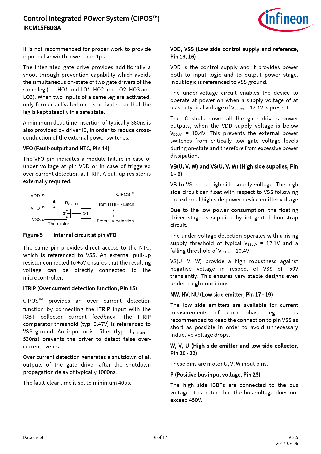 Control Integrated POwer System (CIPOS™) IKCM15F60GA It is not recommended for proper work to provide VDD, VSS (Low side control supply and