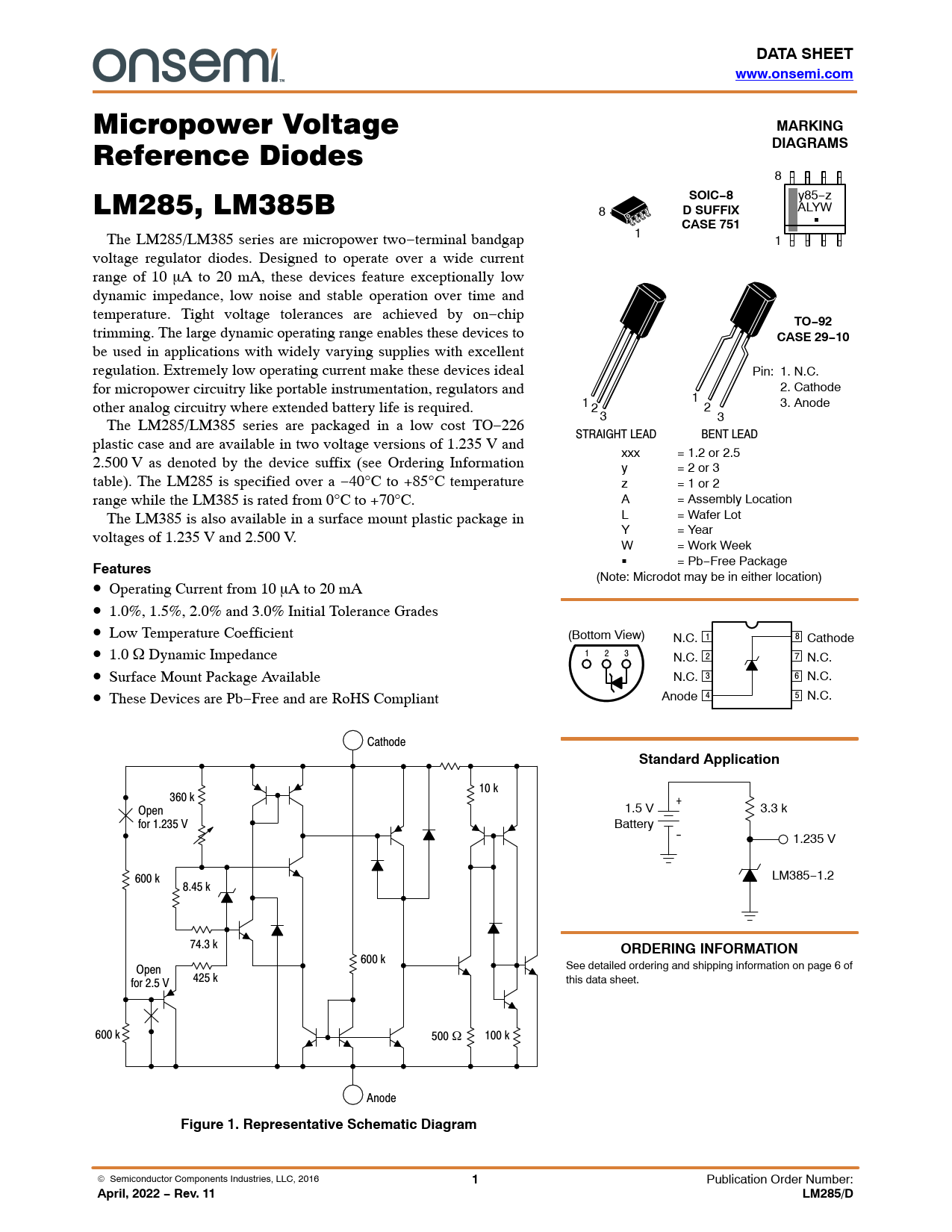 Datasheet LM285, LM385B (ON Semiconductor)