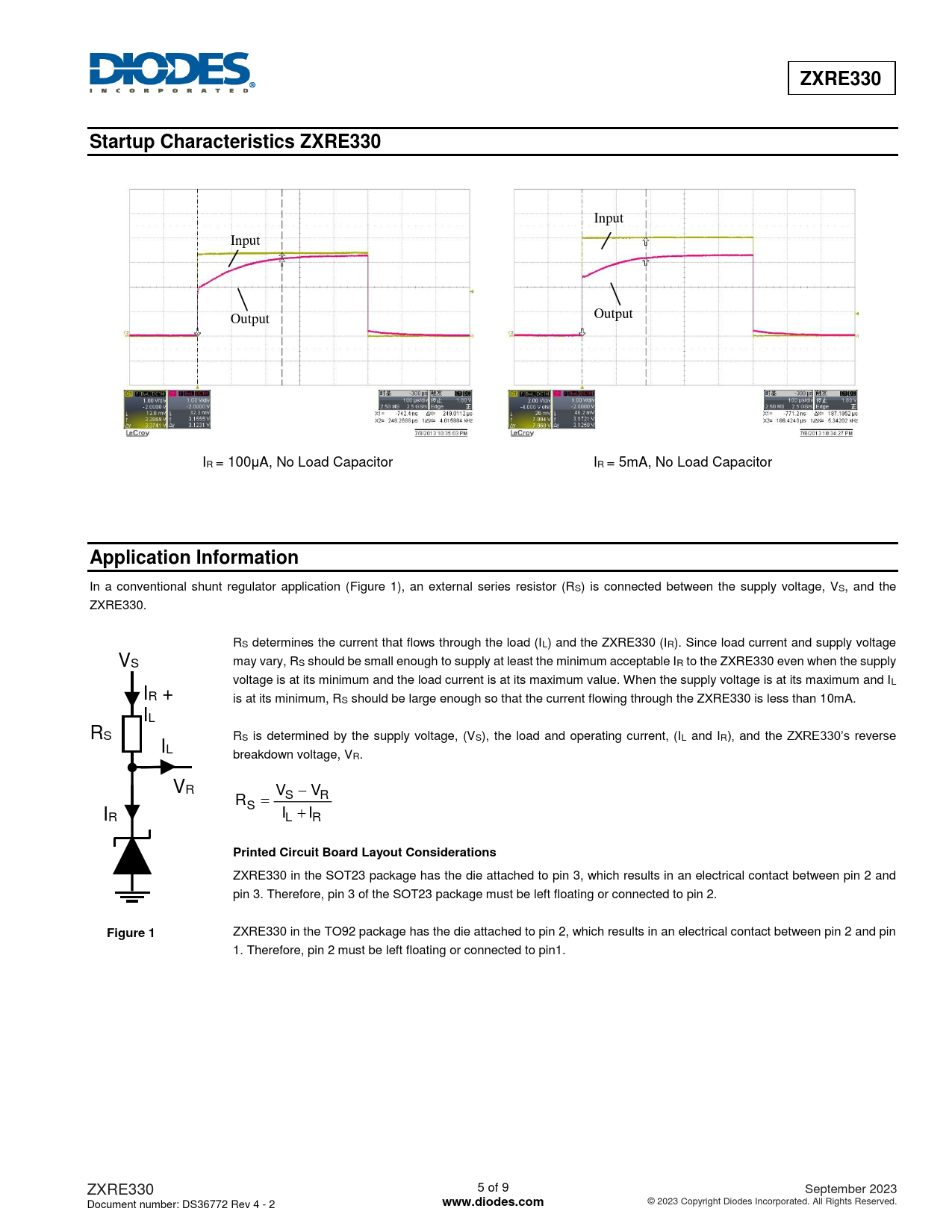 ZXRE330. Startup Characteristics ZXRE330. Application Information. Printed Circuit Board Layout Considerations. Figure 1