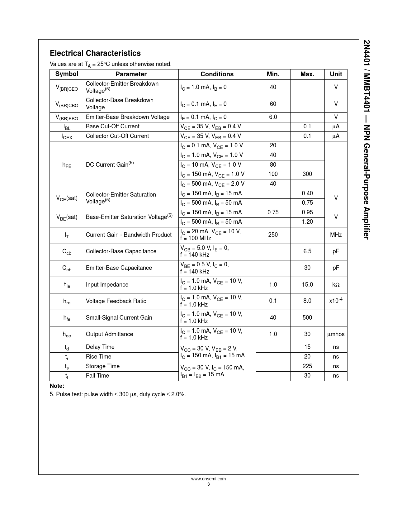 5. Pulse test: pulse width ≤ 300 μs, duty cycle ≤ 2.0%. www.onsemi.com 3