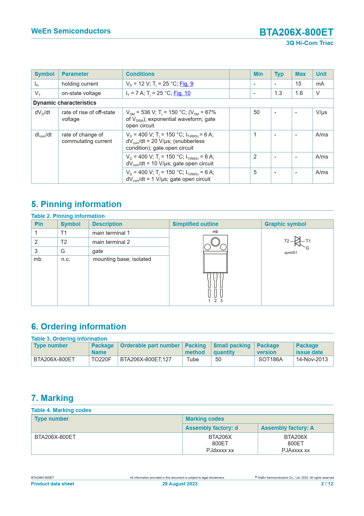 Datasheet BTA206X-800ET (WeEn Semiconductors) - 2