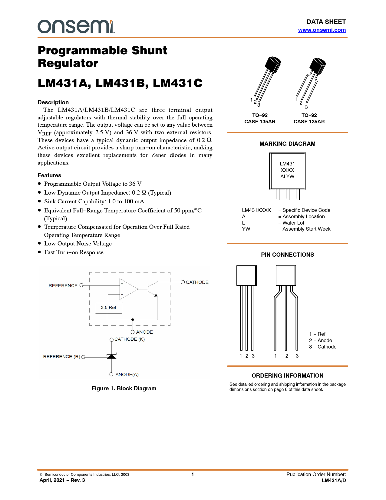April, 2021 − Rev. 3 LM431A/D