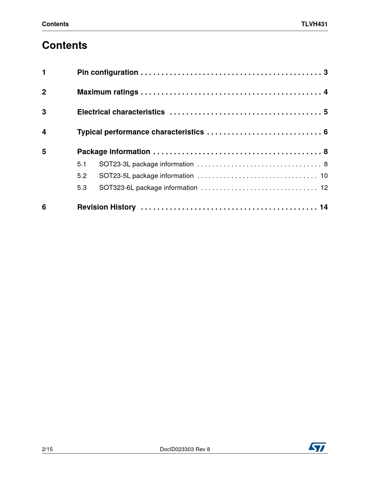 Seiten / Seite15 / 2 — Contents. TLVH431. Pin configuration . 3. Maximum ratings . 4. Electrical …