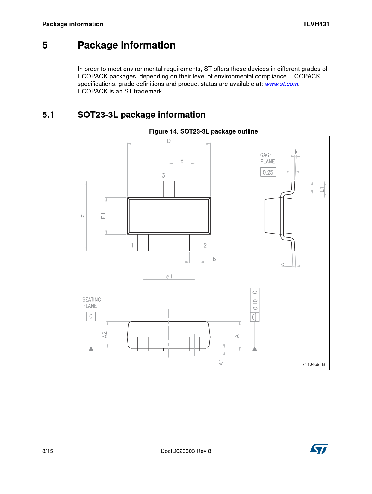 Package information. TLVH431. 5.1. SOT23-3L package information. Figure 14. SOT23-3L package outline
