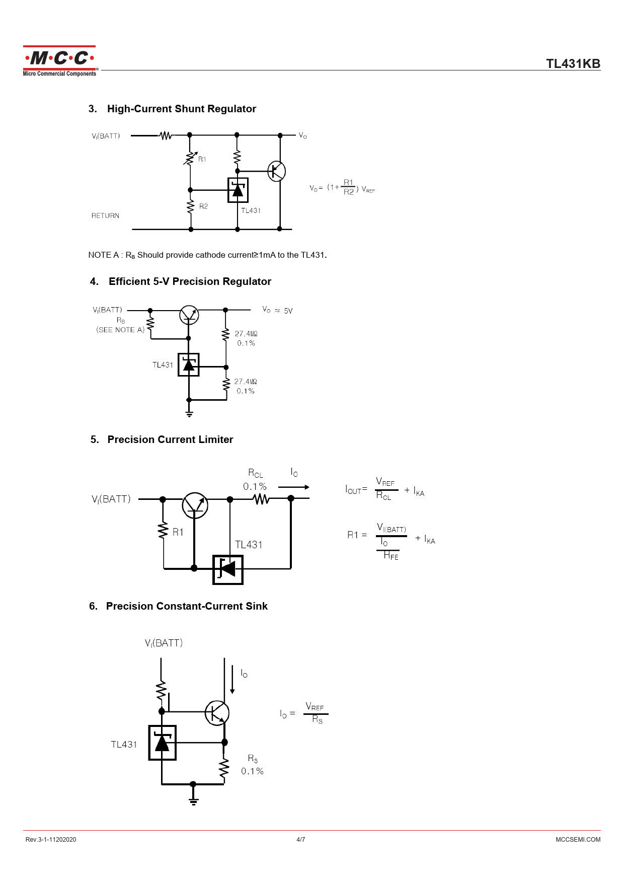 TL431KB. 3. High-Current Shunt Regulator. 4. Efficient 5-V Precision Regulator. 5. Precision Current Limiter